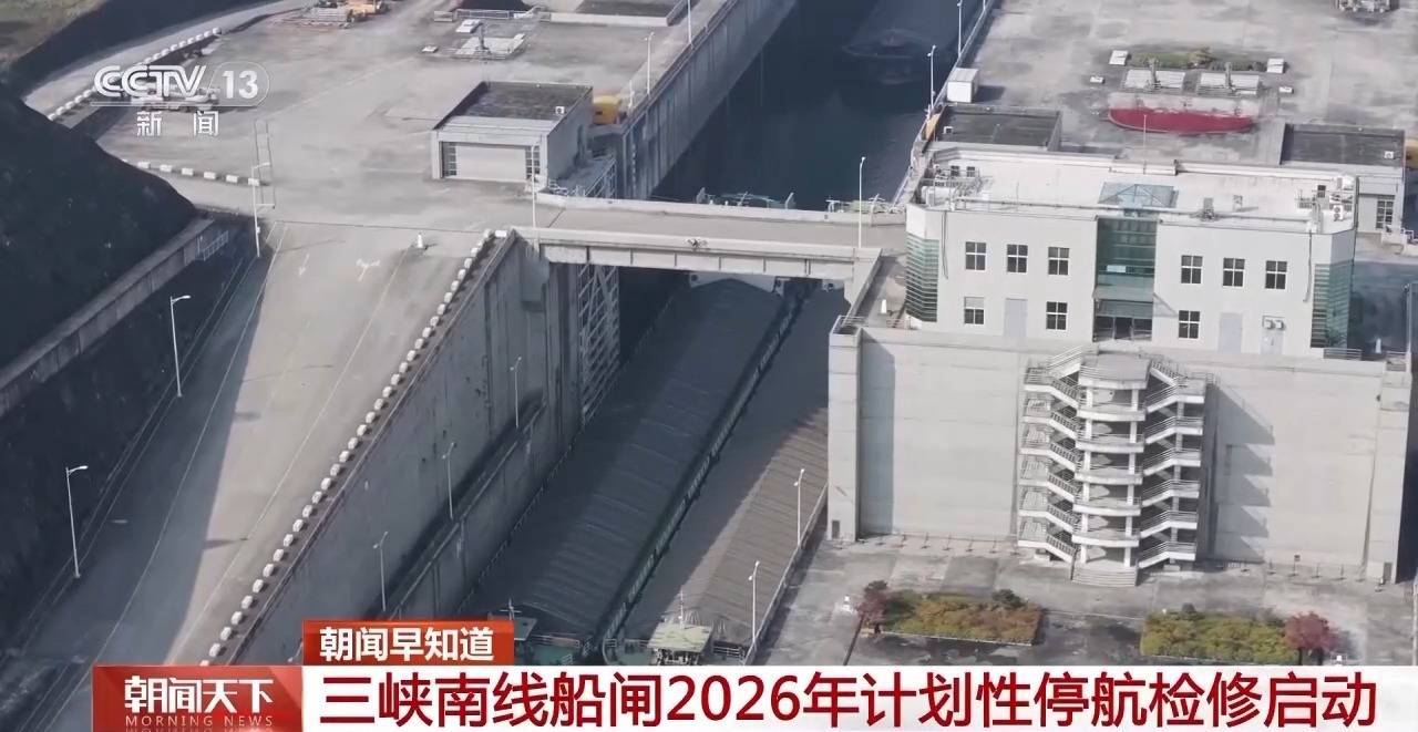 今天(3月4日)早上8点,三峡南线船闸2026年计划性停航检修正式启动。这是三峡船闸通航22年来第9次计划性停航检修,将为长江水道的安全运行打下坚实基础。